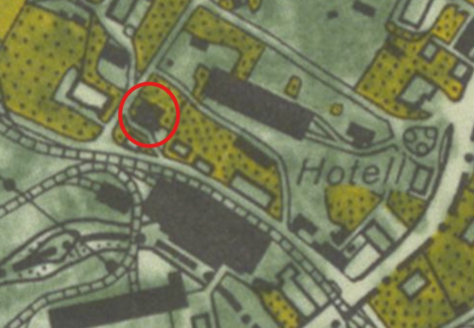 Modellförrådet är här inringat på en karta från 1948.