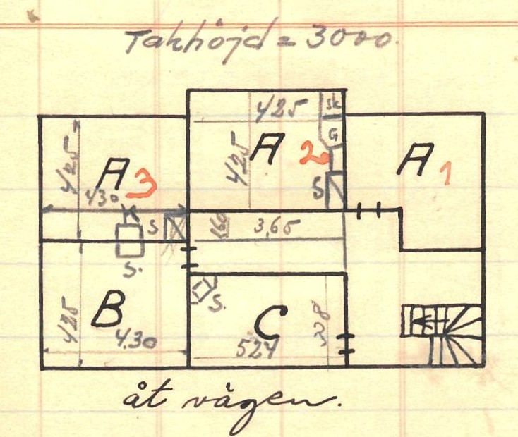 Från fastighetsregister. Tre lägenheter fanns på badhusets andra våning.