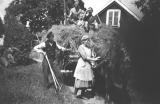 |  02403Hölass, Baggemålen. Bredvid hölasset Arvid Och Anna Karlborg. På lasset Börje Karlborg, sommargäster Alvebäck och Mona. Datum: 2014-01-05 05:09:13