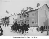 Bildstorlek: 1608 x 1080 | |  BM009Järnvägsgatan. Landshövding Douglas på besök i Boxholm, 1903-01-19. Märk unionsflaggorna och skylten 'Järnvägshotellet' på Adolfborg. Se BM024. Datum: 2014-01-15 04:16:52