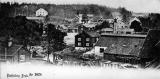 BM147Boxholms bruk från Sågvägen, 1878. Nere till vänster är Vidingesmedjans tackjärnsbod konverterad till bostad, som 1944 flyttades till Malexander då Ångcentralens ställverk skulle byggas. Uppe till vänster bland trädtopparna skymtar lusthusets tak (brann 1952) och till höger om det är Missionshuset (1877-1966). I bildens mitt framför Brukstorget Liggger Åsbobyggnaden där smederna till den uppströms liggande Åsbosmedjan bodde. 1882 förlängdes Övre verket ner till Landsvägsbron och då fick Åsbobyggnaden ge vika. Märk att Brukshotellet finns, men ej den handelsbod som senare skulle komma att kallas "Nedre ringen". Bakom övre verkets skorsten skymtar dock den första handelsboden från 1860. Den revs efter det att den större handelsboden uppförts 1885 och 1886 byggdes "Gamla skogskontoret"-huset. Uppe till höger skymtar Långholmen och efter den man ser skogen sträcka sig ända fram till Landsvägen/Storgatan. Datum: 2014-01-15 04:19:01