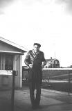 |  02066Sven Laudon framför kiosken i Ljungstorp, ca 1950-tal. Datum: 2014-01-05 05:13:00