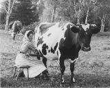 |  00236Piga mjölkar en ko. Foto: Abbetorpsfotografen Karl Otto Karlsson. Datum: 2014-01-05 05:10:54