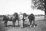 |  00238Filip Sandberg med sina tre hästar i Abbetorp, ca 1925. Filip född 25/4 1905 och död 19/1 1990. Foto: Abbetorpsfotografen Karl Otto Karlsson. Datum: 2014-01-05 05:10:56