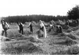 |  00245Rågskörd i Kärrbetorp, 1905. Alfred Andersson längst bort. Oskar går först med lien. Syskonen Filip, Erik, Alma och Edla, samt Sofie som extra hjälp. Foto: Abbetorpsfotografen Karl Otto Karlsson. Datum: 2014-01-05 05:11:03