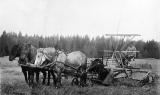 Bildstorlek: 1084 x 758 | |  00246Slåttermaskin, 1910. Slåttermaskinen är försedd med s.k. "apparat" monterad för att lättare kunna samla säden i kärvar. På maskinen Karl Pettersson. Foto: Abbetorpsfotografen Karl Otto Karlsson. Datum: 2014-01-05 05:11:03