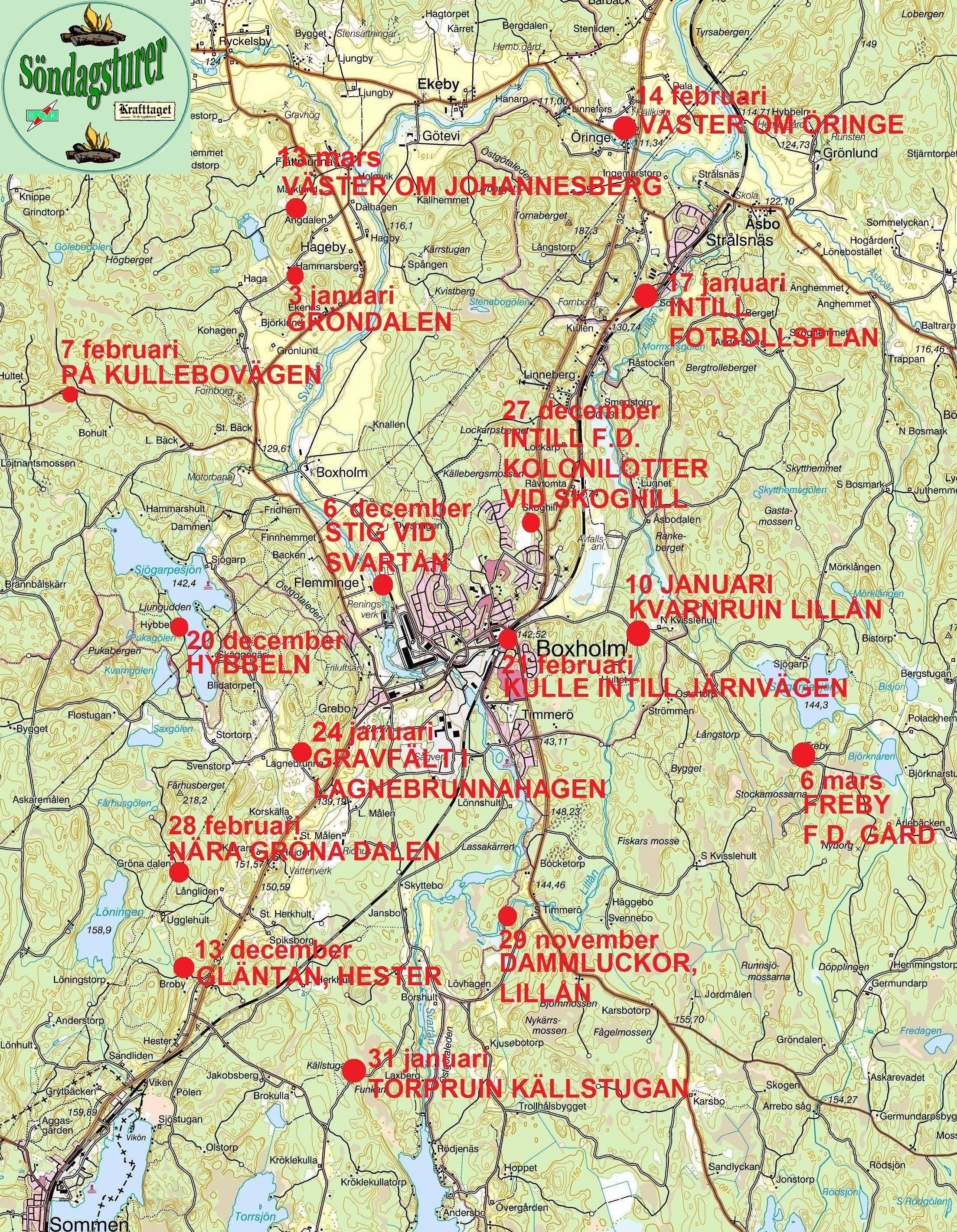 kan karta ses som visar Söndagstursplatserna 2015-2016